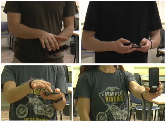 - Pazmino, P.J.; Lyons, L. An exploratory study of input modalities for mobile devices used with museum exhibits. In Proceedings of the 2011 Annual Conference on Human Factors in Computing Systems (CHI’11), Vancouver, BC, Canada, 7–12 May 2011; pp. 895–904. [Google Scholar]