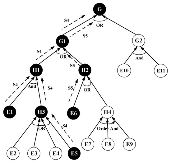 As shown in Table 4, the AT contains seven attack paths, namely S1 = (E1, E2), S2 = (E1, E3), S3 = (E1, E4), S4 = (E1, E5), S5 = (E6), S6 = (E7, E8, E9), and S7 = (E10, E11).