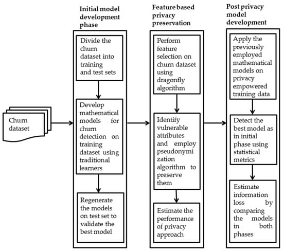 From the attributes recognized in previous step, vulnerable features needs to be preserved prior to churn analysis. For this reason, privacy preserving algorithms are to be tested. These algorithms must ensure that preserved attributes are not re-disclosed after protection (i.e., no re-disclosure) and must also ensure that original instance of data is recoverable at the time of need (i.e., re-availability). Techniques like k-anonymization prevent re-disclosure, however if reiterated, information can be recovered leading to risk of privacy breach. Hence such techniques cannot be adopted while securing sensitive information from churn data. Thereby, enhanced algorithms of privacy preservation are to be adopted for supporting re-availability and avoiding re-disclosure of the data. One such privacy mechanism to conserve data is by pseudonymization [70]. Pseudonymization is accomplished by replacing vulnerable attributes with consistent reversible data such that information is made re-available and not re-disclosed after replacement. This technique would be suitable for protecting churn attributes.