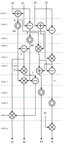 - Kaliski, B.S.; Koc, C.K.; Paar, C. The Montgomery Powering Ladder. In International Workshop on Cryptographic Hardware and Embedded Systems; Springer: Berlin/Heidelberg, Germany, 2003. [Google Scholar]
