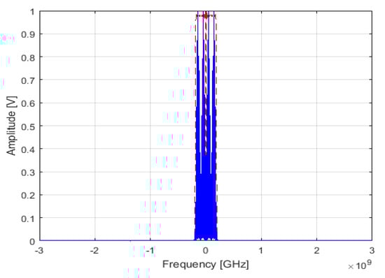 In case 3 (sampling frequency and number of subcarriers increment), in comparison with case 1, the test introduces a suitable enhancement for both the sampling frequency and the number of frequency subcarriers. As is obvious in Figure 5, an advanced case of transmission is gotten herein by expanding the utilized sampling frequency from 4 to 6 GHz and updating the applied number of subcarriers into 32 (double). Worth noting that, the FDAC of this case can be further enlarged, but since the multi-carrier OGFDM system tends currently to work at the 6 GHz band radio frequency, the employed FDAC is upgraded by only 50% of the initial case. In comparison to the second case, a better sampling frequency (187.5 MHz) is obtained herein which in turn can increase the bit rate of transmission for each utilized subcarrier to 656.25 Mb/s side by side with escalating the overall channel capacity to 21 Gb/s. Since the future applications of mobile tend to increase the number of subscribers yet keeping the bit-rate of each one at a high level, this case that combines both the improved bit-rate and the enlarged number of subcarriers is highly recommended for the expanded design of the multi-carrier OGFDM waveform.