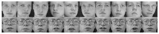 Similar to YALE, ORL is also a face image dataset. ORL contains 10 different images each of 40 distinct subjects. The images were taken several times, varying the illumination, facial looks (open/closed eyes), facial emotions (smiling/not smiling), and facial appearances (glasses/no glasses). The images were taken against a dark background with the subjects facing the camera (with tolerance for some side movement). Figure 3 shows sample images from the ORL dataset.