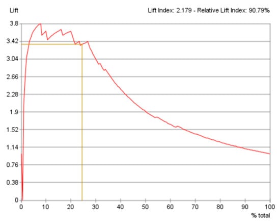 4.6.2. Evaluation of the Predictive Performance Using the Gains Curve, Lift Curve and ROC Curve