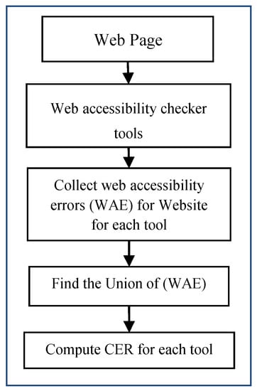 In this section, a framework for comparing the performance of web accessibility tools is proposed. It relies on collecting accessibility errors using a number of tools. In this study, a web accessibility error denotes a contradiction that may violate one or more WCAG 2.0 criteria. Let us assume that there are a number of tools to measure web accessibility for a given webpage. Therefore, with respect to various accessibility tools, it can be said that a specific tool is considered the one that performs the best if it has the ability to detect more web accessibility errors accurately. To achieve this, a coverage error ratio (CER) metric is proposed to be computed for each tool and a given webpage. The performance of web accessibility tools can be measured by computing a CER score for each tool. By comparing the attained CER scores for tools, the tool with the highest CER score can be considered the one with the best performance.