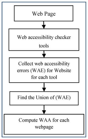 The evaluation of a website in terms of web accessibility is a hard task []. In the literature, there are many approaches to evaluating the accessibility of webpages. One of the most common approaches is to examine the web accessibility of a webpage using automatic evaluation tools. These tools can also be called web accessibility checkers, and the terms are used interchangeably in this paper. Furthermore, with the development of WCAG 2.0, various automated web accessibility evaluation tools have been widely used to determine to what extent a specific webpage meets accessibility guidelines, especially WCAG 2.0. The widespread utilization of automated web accessibility checkers is due to the fact that WCAG 2.0 was designed to be more testable and measurable than WCAG 1.0. Many organizations rely on automated web accessibility evaluation tools as the main indicator of their accessibility level in the absence of expert evaluators [].