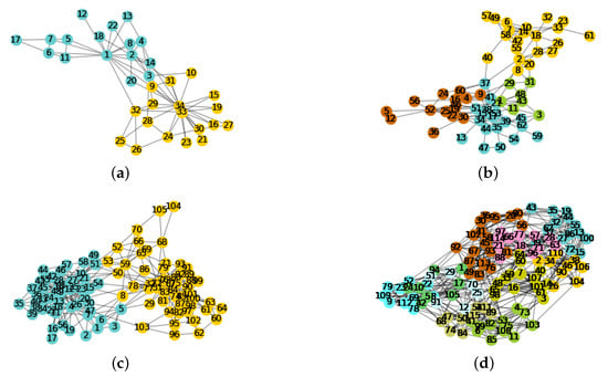 - Raghavan, U.N.; Albert, R.; Kumara, S. Near linear time algorithm to detect community structures in large-scale networks. Phys. Rev. Stat. Nonlinear Soft Matter Phys. 2007, 76, 036106. [Google Scholar] [CrossRef]