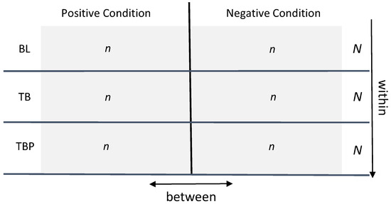To test the hypotheses, a driving simulator study with a mixed-model design was conducted. Thus, two independent variables were manipulated, a within factor and a between factor. The manipulation of the information display regarding the automated driving function served as the within variable, while the availability of the automation served as the between variable. Three different information display concepts were tested. A baseline concept (BL) was compared to two different advanced concepts [time before activation (TB) and time before activation plus personal approach (TBP)], differing in their manner of providing information regarding automation. For testing the between factor, the participants were divided into two subgroups—a positive and a negative condition—differing in the availability durations of single availability periods. The experimental design is illustrated in Figure 2.