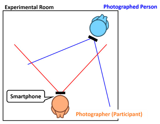 Experimental environment where photographed person records the video of the photographer, while the photographer is performing either photo-taking behavior or net-surfing behavior with a smartphone.
