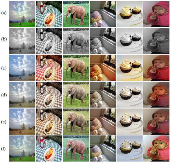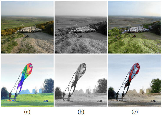 - Larsson, G.; Maire, M.; Shakhnarovich, G. Learning Representations for Automatic Colorization. In Proceedings of the Computer Vision—ECCV 2016—14th European Conference, Part IV, Amsterdam, The Netherlands, 11–14 October 2016; pp. 577–593. [Google Scholar]