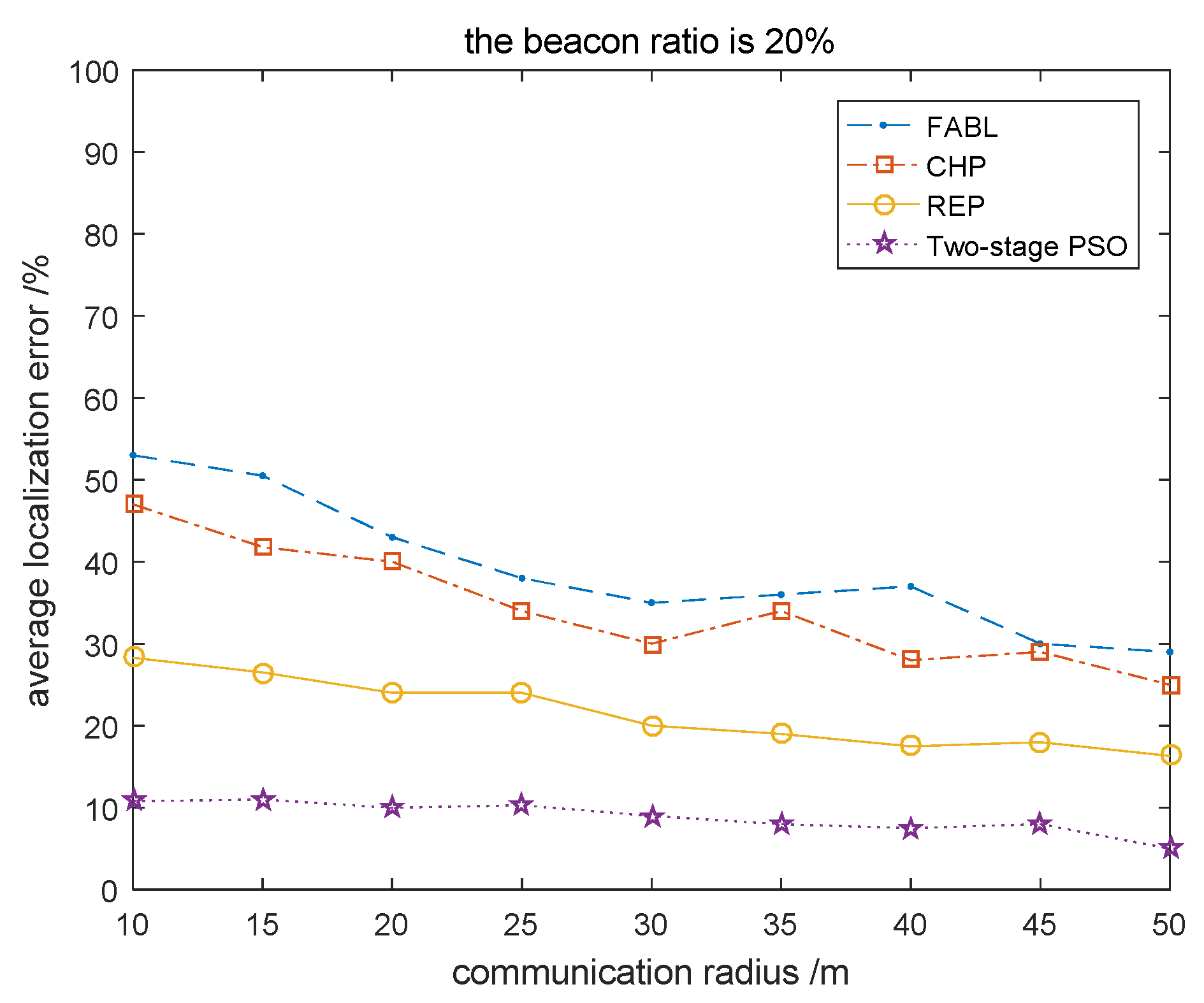 4.2.1. Relationship between Node Communication Radius and Localization Results