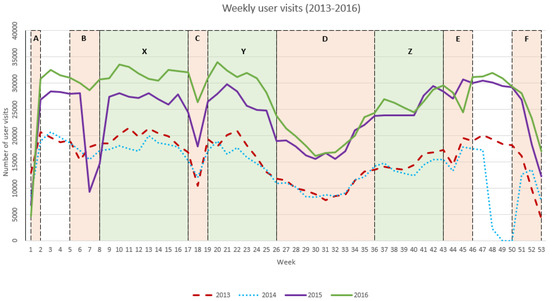 Weekly user visits to DLUM between January 2013 and December 2016.