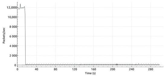 The literature separates DoS attacks into those that target specific vulnerabilities and those that use flooding attacks []. In flooding attacks, the target receives a continuous and excessive volume of packets. Thus, traffic from legitimate sources can be blocked due to congestion and discarding packets. Regarding vulnerability attacks, the target host receives malformed packets []. These malformed packets interact with flaws or vulnerabilities in an application or resource hosted by the target.