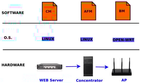 Concerning the operating system, we use Ubuntu 18 for the Web server and the notebooks. We replace the original APs firmware with the Open-WRT []. Open-WRT is a Linux operating system targeting embedded devices. Performing this replacement allowed our module BM to run directly on the APs. Our Web application server uses the Apache2 version 2.4.7.