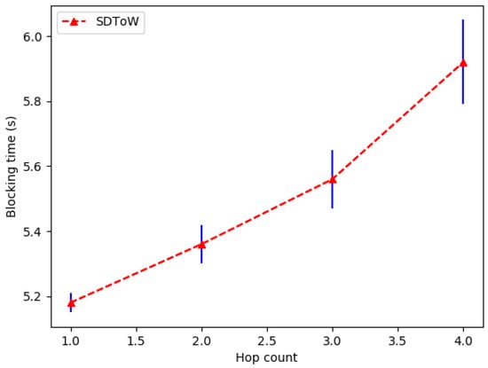 5.2. Experiment 2: Measuring How the Number of Hops Affects the Blocking Delay