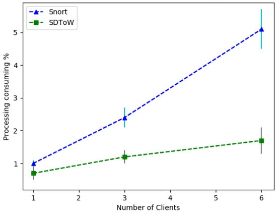 Processing consumption comparison for Snort and SDToW.
