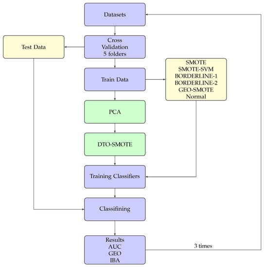 - Douzas, G.; Bacao, F. Geometric SMOTE a geometrically enhanced drop-in replacement for SMOTE. Inf. Sci. 2019, 501, 118–135. [Google Scholar] [CrossRef]