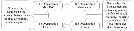 (1) Analysis based on SWOT analysis. With a focus on industry trends, research directions of the organization, existing research capabilities, and current research needs, 12 professors and young teachers were invited to brainstorm and discuss in a conference room of the college on November 17, 2020. The analysis shows that the opportunities faced by the organization are “the contradiction of resources and environment facing economic development is prominent.” The threat is that “similar colleges in the local region have relatively distinctive industry characteristics.” The strength is that the disciplines are relatively complete. The weakness is that the discipline of economics and financial management is relatively deep, and the advantage of management is not prominent. The strategy of organizational development should be “condensing the industry characteristics of circular economy and management,” and the knowledge gap is “management decision-making in the field of the circular economy, including system analysis, evaluation, and decision-making.” The knowledge gap obtained by the SWOT analysis method is shown in Figure 2.