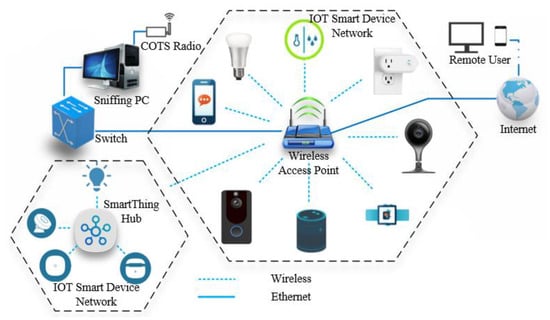 The wireless network packets to test our modules were collected within a simple testbed lab environment, where multiple IoT devices were connected to an access point (AP).