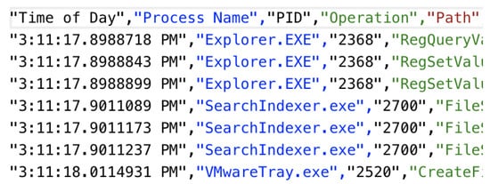 Figure 3), where IOTwireless.csv is a labeled data set file. Sniff is a Scapy built-in function to control network packets, and it allows users to pass a function with an argument “prn” to perform custom actions. The variable Labels represents the feature labels list to be extracted from the input PCAP file. Dot11 and Dot11Elt are wireless frame layers, which hold information about the connected wireless network. Dot11 and Dot11Elt are layer fields and are the values associated within each packet with the labels defined in Labels.
