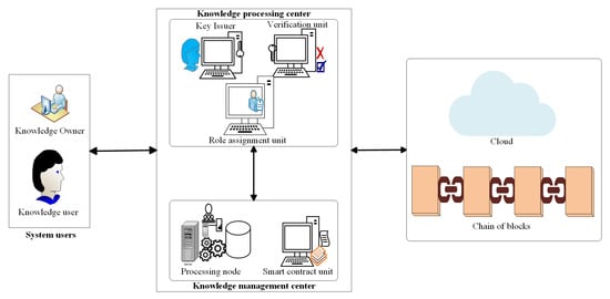 Our system, as shown in Figure 1, comprises of the following major components: a user layer, knowledge processing and management units, a blockchain and a cloud server. The various components are explained below.