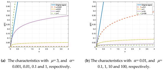 Figure 1a depicts the characteristics for = 3, = 0.001, 0.01, 0.1 and 1; Figure 1b shows the characteristics for = 0.01, = 0.1, 1, 10, 100. As can be seen from the figure, and together determine the characteristics of the compression function, which affects the performance of the CNC.