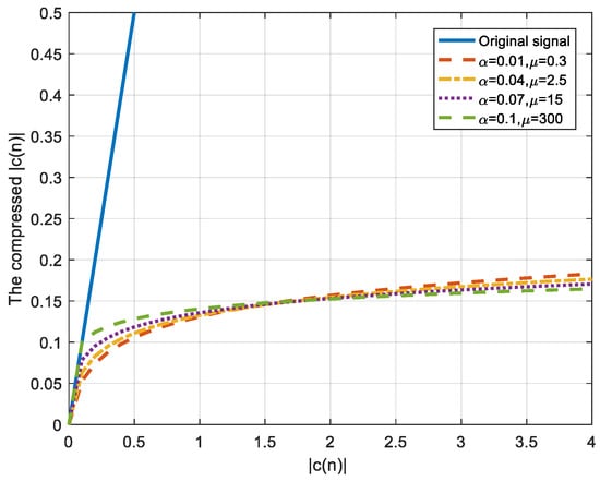 According to (12) and (13), it can be seen that is a scale factor that causes the signal to be linearly scaled, while is a compression factor that affects the shape of the compression curve, causing the signal to be nonlinearly scaled. Therefore, and together determine the characteristics of the compression function, as shown in Figure 1.