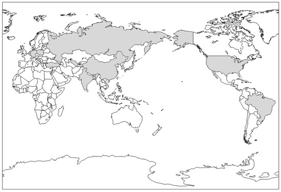 Countries in which Japan Interest Group Study (JIGS) survey has been conducted (in grey).