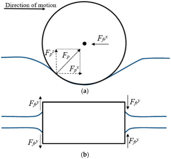 Forces acting in the pneumatic linear peristaltic actuator (PLPA): (a) lateral view and (b) top view.