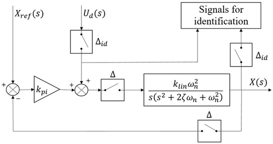 Since this is a Type 1 system, the PLPA could hit the stroke ends during the identification procedure. To circumvent this, a proportional controller was used to attract the PLPA to the middle of the stroke. Persistent excitation is ensured by a disturbance signal added to the control action, as presented in Figure 6.