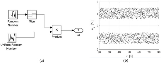 Disturbance signal for identification: (a) signal implementation; (b) signal output.