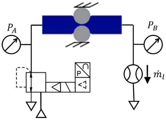 In order to measure the leakage flow between chambers and through the pneumatic fittings, , the scheme shown in Figure 8 was used.
