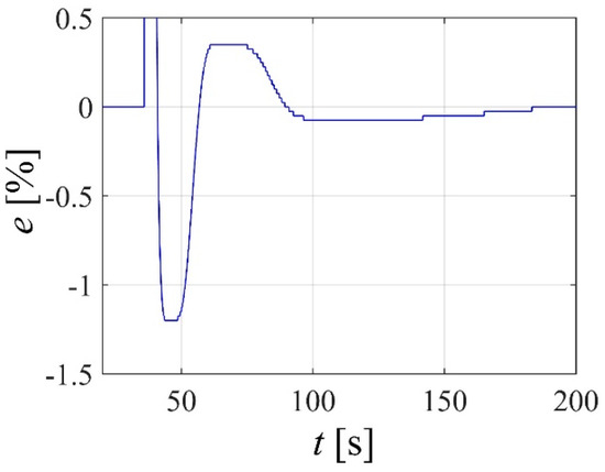 In order to provide preliminary results of the potential results obtainable with this type of actuators, a PID-type controller was developed and tuned according to Ziegler–Nichols tuning rules. Then, these parameters where experimentally fine-tuned. Figure 15 presents the error response obtained, in percentage of the 20 mm amplitude step applied.