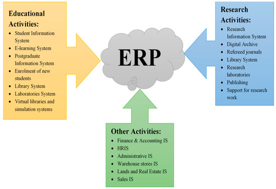 Cloud enterprise resource planning (ERP) for higher education (HE) institutes. This is the authors’ own work, and the activities are classified on the basis of the model of business activities in HE institutes that was presented by [4].