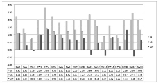 - KW13. Late deliveries and unexpected time delays are a consequence of underestimating. This question had a negative difference value of 0.39 (BG: 0.50 vs. EG:0.89), and this is mainly due to the concepts of “late delivery” and “unexpected time delays”, which, although being mentioned during the game, did not occur during gameplay. It was expected that the subjects could, subjectively, perceive and reinforce these as consequences of underestimating, but the results do not support that. The game could be improved by provoking these events during gameplay, as a result of underestimating.