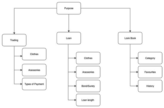 - (RQ4) How can be proposed the taxonomy for the mobile applications of this purpose?The taxonomy was suggested by three different characteristics, such as trading, loan and look-book. Firstly, the trading included clothes, accessories and various types of payment. Secondly, the load provides for also clothes and accessories, bond/surety and a loan length. Finally, the look-book should have a category, favourite type and a history search.