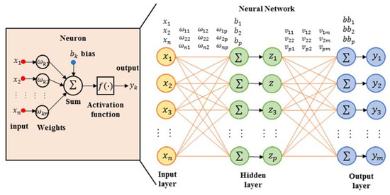Each iteration from steps 2–6 is called an epoch. Usually, many epochs are required between training is completed. The hidden layer nodes, activation function, learning rate, and gradient descent function are effect on speed and accuracy of the training process. The number of nodes for the output layer is one. It is measured the saturation flow rate. The number of nodes for the hidden layer is based on Equation (11).