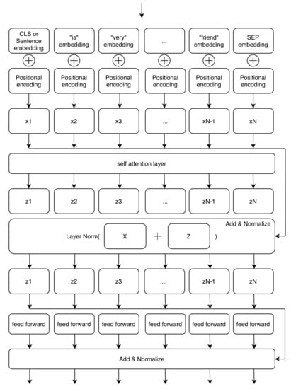 This is a representation of one encoding layer mentioned in Figure 4. There are twelve of this encoding layer in the final architecture. The word embedding of each token passes through these encoding layers and at the end we obtain the transformed word embeddings.