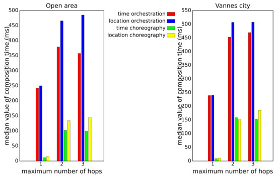 - Baklouti, F.; Le Sommer, N.; Mahéo, Y. Choreography-based vs Orchestration-based Service Composition in Opportunistic Networks. In Proceedings of the 13th International Conference on Wireless and Mobile Computing, Networking and Communications (WiMob 2017), Rome, Italy, 9–11 October 2017; IEEE: Piscataway, NJ, USA, 2017. [Google Scholar]