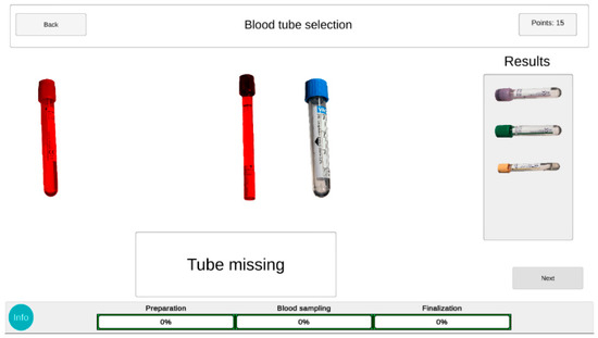 This was done by identifying a BLS problem, choosing state-of-the-art technologies that enhance the engagement of the students, iteratively developing the learning game in close collaboration with educators and students, evaluating the games (first mStikk and after that wStikk), and finally estimating benefits and limitations uncovered in the process. An essential aspect of the app is “gamification” of parts of the procedure. Figure 1 presents an example of this, where students need to learn which blood tubes to choose for phlebotomy. Identifying the correct tubes leads to earning points, while points can be lost by identifying incorrect ones.