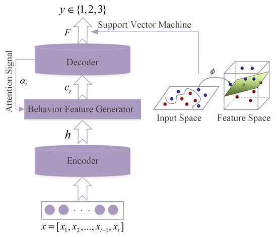 Finally, is a function of hidden states, which allows the decoder to dynamically select and linearly combine different parts of the input sequence hidden states, which can generate students’ behavior features . Each student is an independent individual who has different behavioral characteristics and motivations. Furthermore, as the SVM approach has achieved great results in most of machine learning tasks, we simply use SVM to classify student behaviors to predict their academic level y.