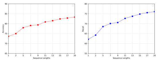 Accuracy and recall of the SPC model with the impact of different sequence lengths.