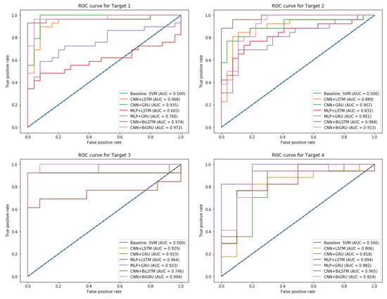 Figure 8 shows the result of varying the number of epochs for the targets of the original dataset, where the classification performance increases significantly as the number of epochs increases. The model tends to be stable after the epoch number 70 for the Target 1, 60 for the Target 3, and 50 for Target 2 and Target 4.