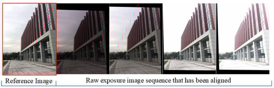 Zhang et al. [29] suggested a wavelet-based fusion algorithm for multi-exposure images. However, the method cannot enhance the details adequately for low-resolution images. Kinoshita et al. [31] proposed a multi-exposure image fusion method based on exposure compensation, but the method requires that the inputs have no moving artifacts. Zhen et al. [34] proposed an algorithm to improve accurate contrast enhancement, but it has a poor effect on over-exposed regions. Some HDR algorithms [35,36,37] based on deep learning have been proposed to generate HDR images, but these algorithms do not solve the problems of camera shaking and object movement.