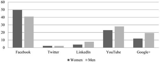 Overall, a greater percentage of female than male respondents use the various technologies, but the overall differences are perhaps more of a result of the country studied than a world-wide perspective. For example, results may be significantly different in developing countries, coinciding with the results of Moghaddam [25] and Fatehkia et al. [50]. More research is needed, but with the patriarchal system gradually weakening in Taiwan and the gender pay gap being less than in many countries, the results from this study show that the higher use of social technologies by women in the workplace may be an indication of empowerment, leading to narrowing of the gender gap. The differences between women and men using Facebook and YouTube were significant, but not in the case of Google+. Creating new patterns and social interactions empowers men and women to be more creative and to increase their business opportunities [51].