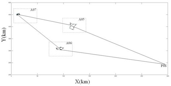 Table 6 shows the results of cooperative communication of UAVs for communication, which were numbered No1 and No2. It can be seen from the calculation results obtained in Table 6 that the flight time of the two UAVs was less than the maximum endurance time, which satisfied the conditions. Therefore, the proposed cooperative communication method is feasible. In summary, in order to complete the detection mission of the UAV, at least two UAVs for communication need to be arranged.