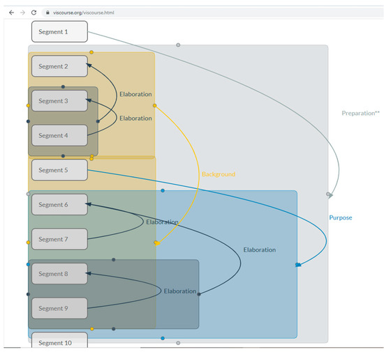- Mann, W.C.; Thompson, S.A. Rhetorical Structure Theory: A Theory of Text Organization; Information Sciences Institute: Los Angeles, CA, USA, 1987. [Google Scholar]