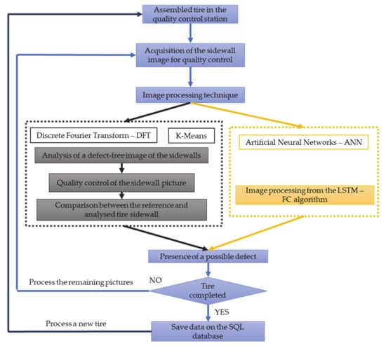 - The methodology includes the individual and simultaneous application of 2D image processing techniques, i.e., the DFT approach and the K-Means image processing, which are fundamental to infer the presence of possible defects on the tire surface. All the image processing aspects, i.e., computational cost, sensitivity, error and integration, are analysed in the work;