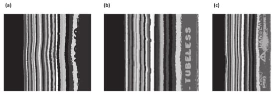 - Chen, P.; Shubinsky, G.D.; Jan, K.-H.; Chen, C.-A.; Sidla, O.; Poelzleitner, W. Inspection of tire tread defects using image processing and pattern recognition techniques. In Proceedings of the SPIE 2063, Vision, Sensors, and Control for Automated Manufacturing Systems, Boston, Massachusetts, 9–10 September 1993; Breidenthal, S.S., Desrochers, A.A., Eds.; pp. 14–21. [Google Scholar]