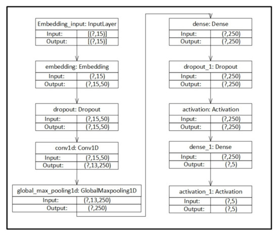 Structure of the convolutional neural network (CNN) model used in the experiment. This shows the layers used in the CNN algorithm and their arrangement.