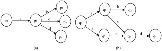 Process algebra [29] can effectively describe the Android architecture and message communication characteristics, and it can be used in the creation of an application attack behavior model according to the attack behavior feature set. The following is the syntactic and semantic specification of process algebra based on behavior features.
